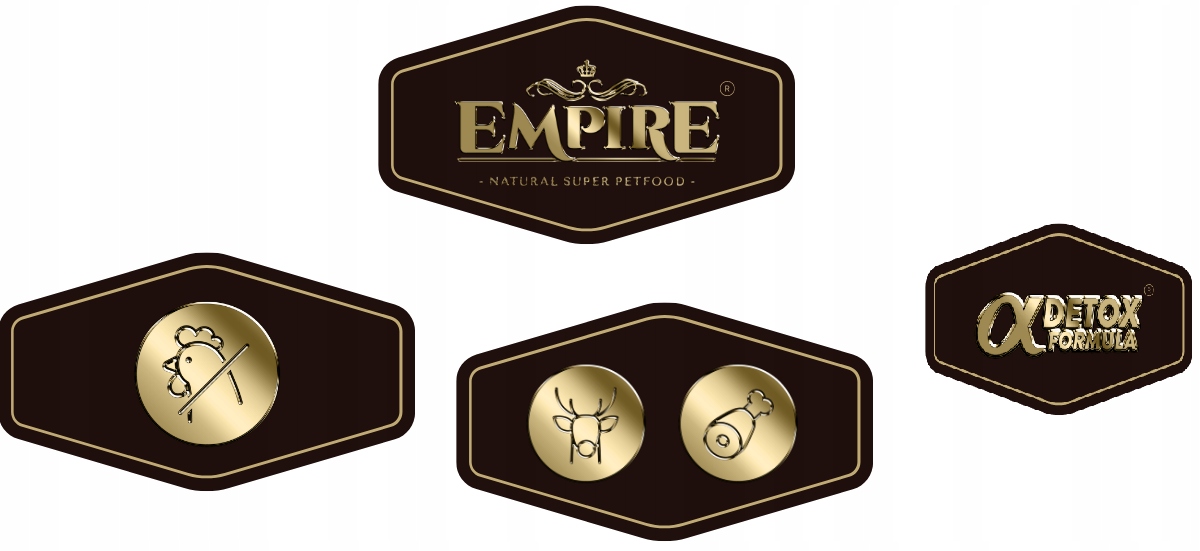 Doskonale wiemy, że produkty pochodzenia zwierzęcego, którymi są mięso oraz bogate w minerały i witaminy podroby są podstawowymi i najbardziej pożądanymi składnikami diety zwierzęcia. Składniki te mają również pierwszorzędne znaczenie jeśli chodzi smakowitość oraz doskonałą przyswajalności pobieranego pożywienia. Program żywieniowy EMPIRE oparty jest o bardzo wysoką zawartość szlachetnych składników mięsnych takich jak: dziczyzna, jagnięcina, niezwykle istotne pożywne podroby, które nadają legendarny smak produktom marki EMPIRE.