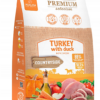 zawartość składników mięsnych w całej zawartości produktu – 50,5% z czego: świeża dziczyzna 15%, świeża wątróbka z dzika 9%, świeży indyk 5%, suszony indyk 12%, suszona jagnięcina 5%, suszona wątróbka z indyka 4,5%. WARZYWA, OWOCE ORAZ DZIKO ROSNĄCE ZIOŁA I INNE: ziemniaki, groch, pulpa buraczana, tłuszcz zwierzęcy, przecier z jabłek, ananas, czarna porzeczka, ostropest plamisty, mniszek lekarski, pokrzywa, mieszanka ziołowa, drożdże browarnicze (naturalne źródło MOS), olej z łososia, olej z siemienia lnianego (naturalne źródło DHA i EPA), Yucca Schidigera, jagody Goji, owoce kolcowoju chińskiego, cykoria, L-Karnityna.