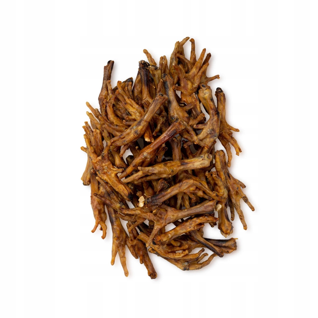 Łapka kurza to przekąska, za którą psiaki przepadają. Jest świetną przekąską na trening — z jej pomocą wszystkie komendy są jak bułka z masłem. Dzięki naturalnym składnikom dostarcza psiakowi cennych witamin i minerałów. Zapewnia zdrowe i mocne stawy. Łapka kurza jest lekkostrawna, dlatego będzie idealnym wyborem dla psiaków na diecie. Łapka kurza jako średniej twardości gryzak dla psów to prawdziwa rewolucja smaku i rozrywki. Zapewnia radość, zdrowie i mnóstwo zabawy. Daj swojemu psu tę wyjątkową przekąskę i przygotuj się na eksplozję szczęścia!