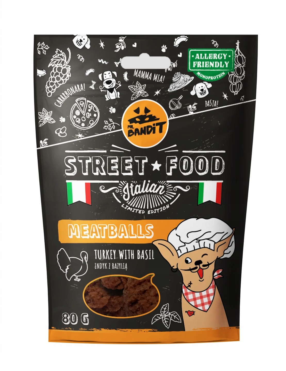 Przysmak dla Psa Mr. Bandit Street Food Meatballs Turkey Basil 80g